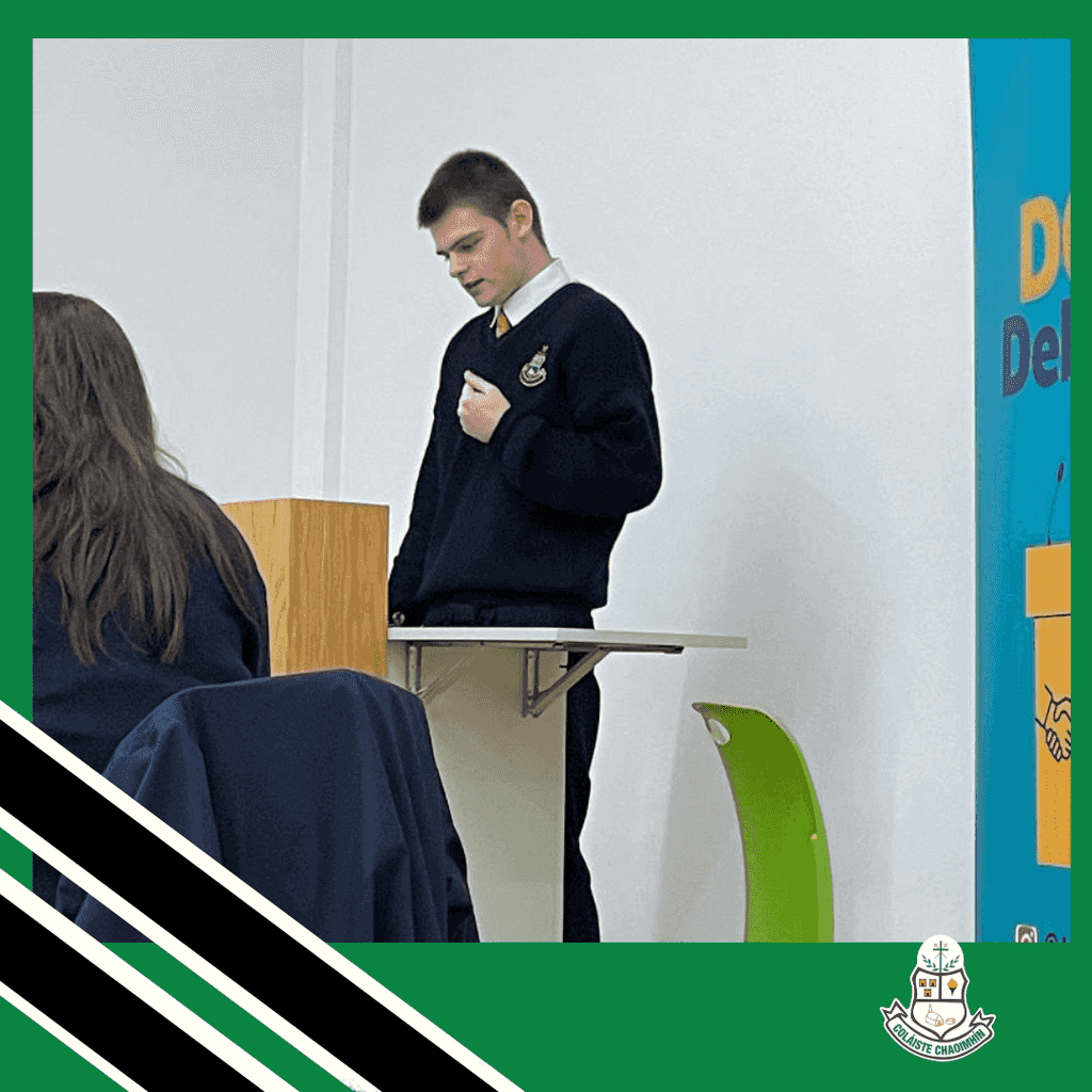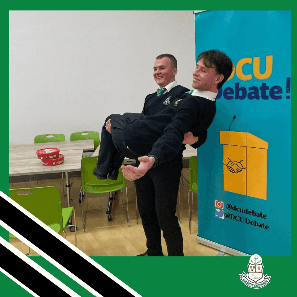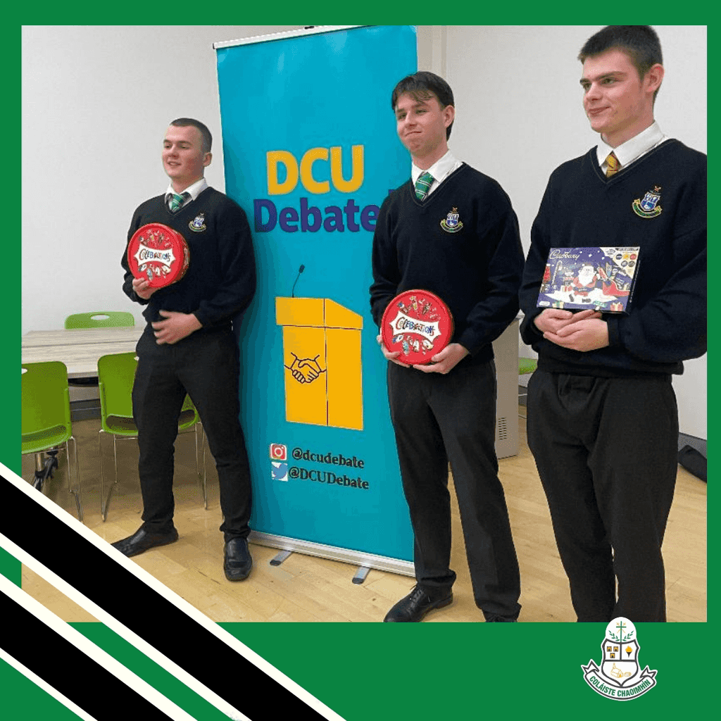 Massive well done to our senior cycle students who participated in DCU Debating Competition with local schools. Jamie and Joshua took home the title of “Best Debating Team” and Christopher taking home the runner up position for “Best Speaker”.